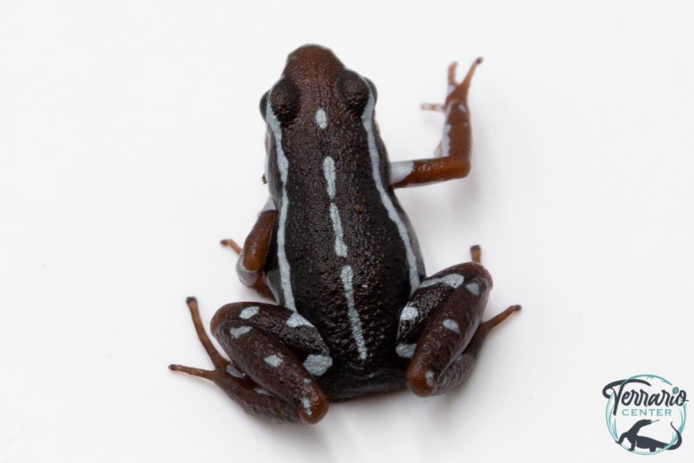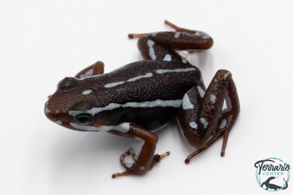 L’Epipedobates anthonyi est une petite dendrobate terrestre originaire des forêts équatoriennes, reconnaissable à son motif en zigzag blanc ou crème contrastant avec un corps brun à rougeâtre. Elle est active, vive, et souvent visible en journée, ce qui en fait une espèce très appréciée des amateurs de terrariophilie tropicale.