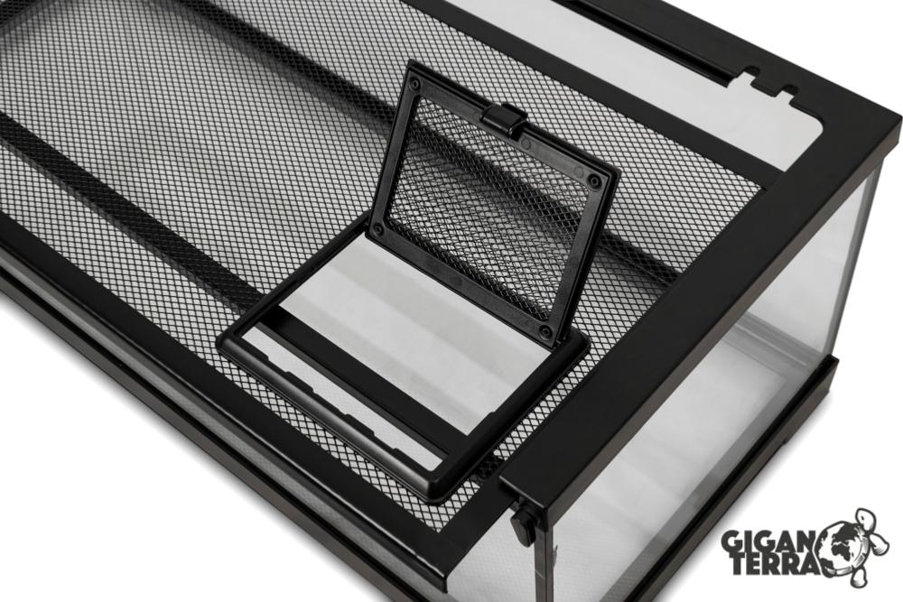 Disponible en tailles variées, ils permettent de disposer une couche épaisse de substrat sur le fond. Deux grandes portes avec fermeture garantissent un accès simplifié pour le nettoyage et le nourrissage. Grilles d'aération amovibles et passage de câbles possible sur le dessus.