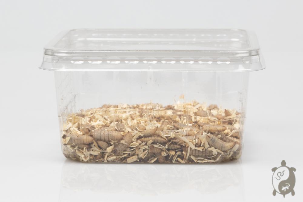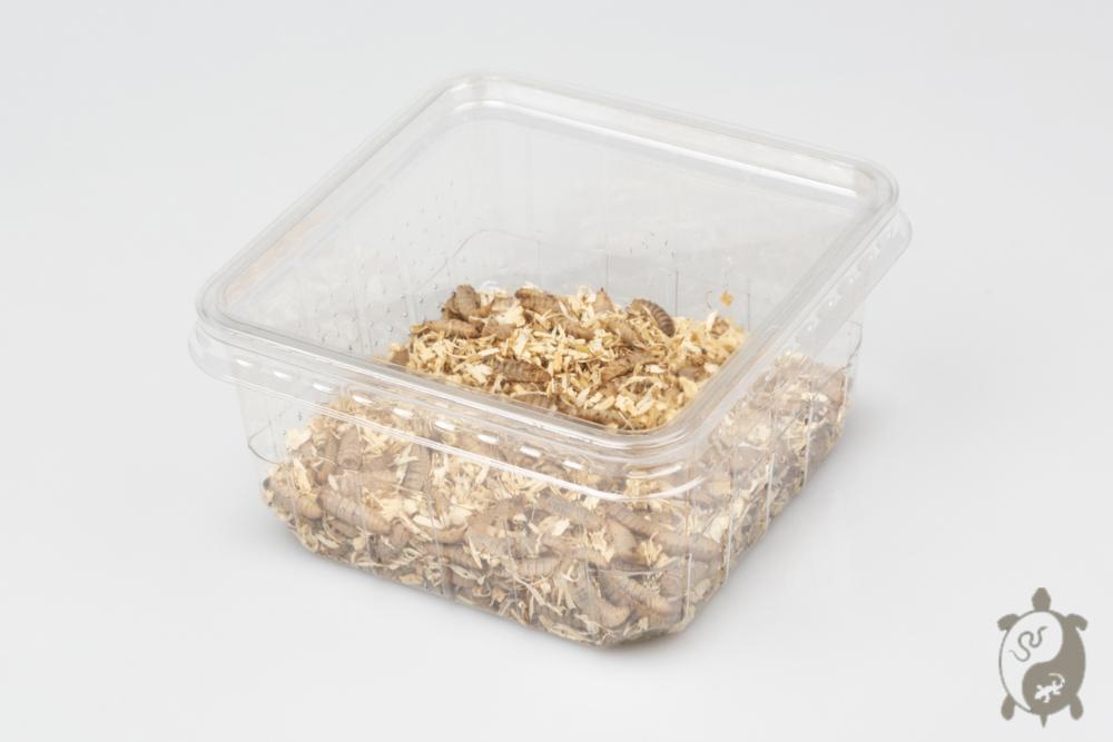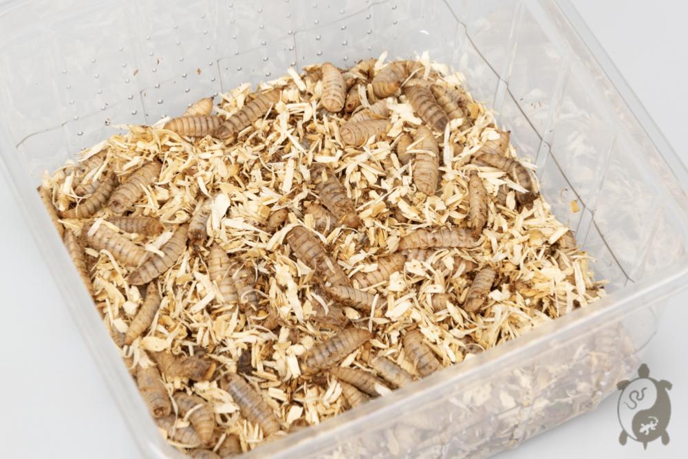 Ces vers sont les larves de l'insecte appelé «mouche soldat noir» (Hermetia illuscens). C’est une nourriture idéale pour les animaux insectivores de par leur composition, leur appétence et leur digestibilité.